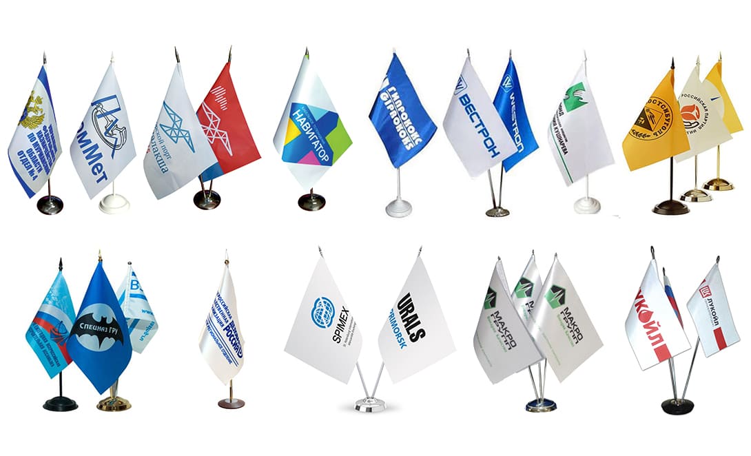 У нас Вы можете заказать настольные флажки, а также мы производим другие виды флажной продукции: напольные флаги, рекламные флаги, фирменные флаги, гирлянды из флажков и другие